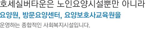 호세실버타운, 요양원, 방문요양센터, 요양보호사 교육원은 노인복지시설뿐만 아니라 방문요양센터, 요양보호사 교육원을